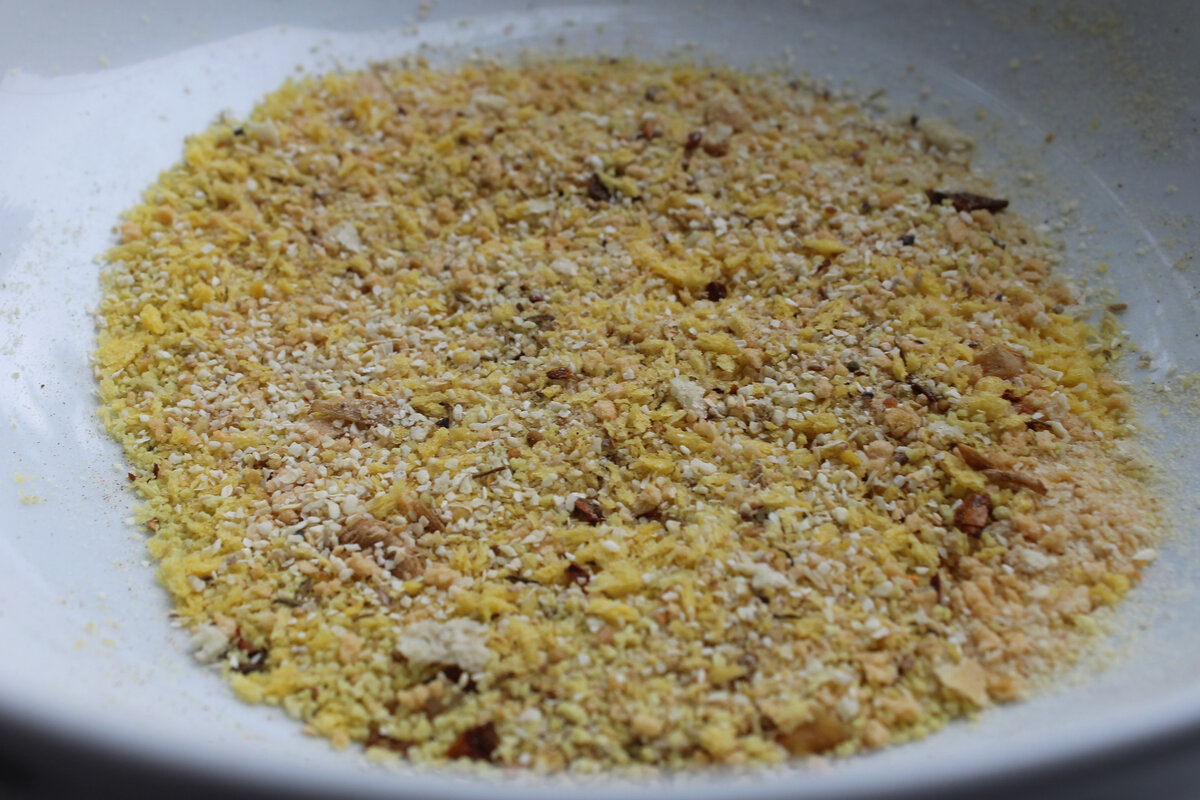Панировку можно приготовлять по вкусу: смеси можно добавлять темпуру для желтого оттенка и extra сыра для более румяной корочки. Стрипсы нарезают тонкими палочками, обмакивают в яйца и обваливают в панировке, затем выкладывают на противень и запекают до хрустящей корочки.