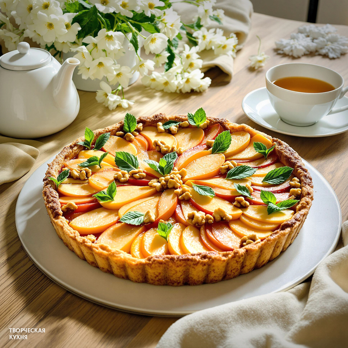 Пора заваривать чай! Нарежьте пирог, украсьте мятой и подавайте к столу — радость близким гарантирована!