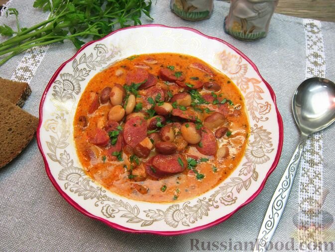 Гороховый суп с копчёностями — это классическое сочетание. Куриное филе придаёт густому супу восхитительный аромат и вкус. Кроме того, фасолевый суп с колбасками, сваренный на мясном бульоне, добавит разнообразия в ваше меню с его насыщенным вкусом и ароматом.