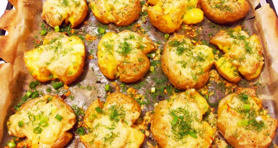 Запеченный картофель, приготовленный по уникальной технологии, радует не только вкусом, но и своим визуальным оформлением. Эта техника подразумевает, что после того, как картофель отварен, он легонько раздавливается. Такой подход позволяет овощу прекрасно впитывать ароматы, создавая хрустящую корочку снаружи, но сохраняя мягкость внутри.