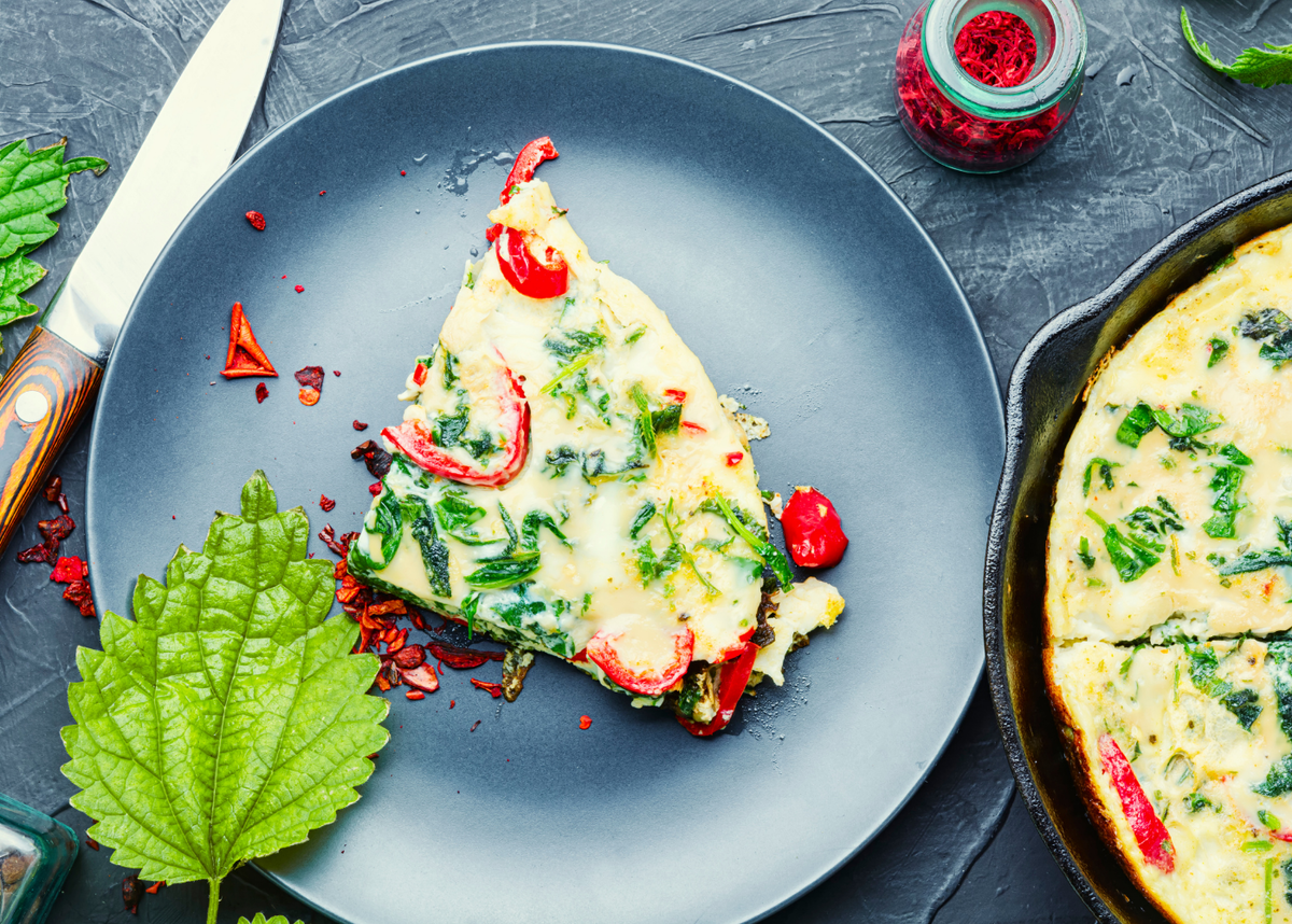 Яйца, свежий болгарский перец, молоко и молодая крапива скомпонованы в этом неповторимом рецепте. Приготовить такой омлет на завтрак всего за несколько минут - проще простого, но стоит быть внимательными: молодая крапива пускает свои шипы. Существует старая пословица: "Хоть крапива и молода, а уж точно ёжится".