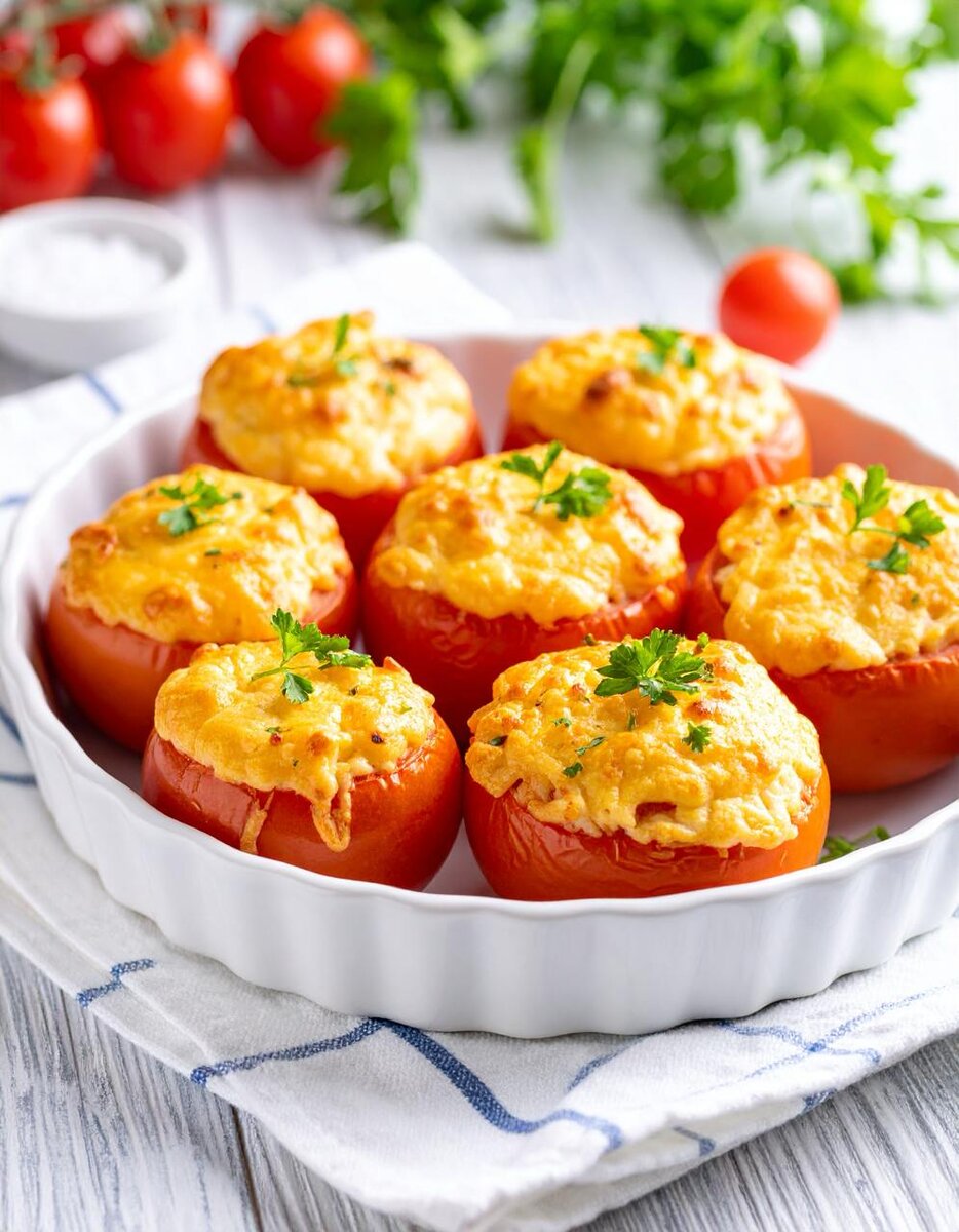 Запечённые помидоры под сырной корочкой