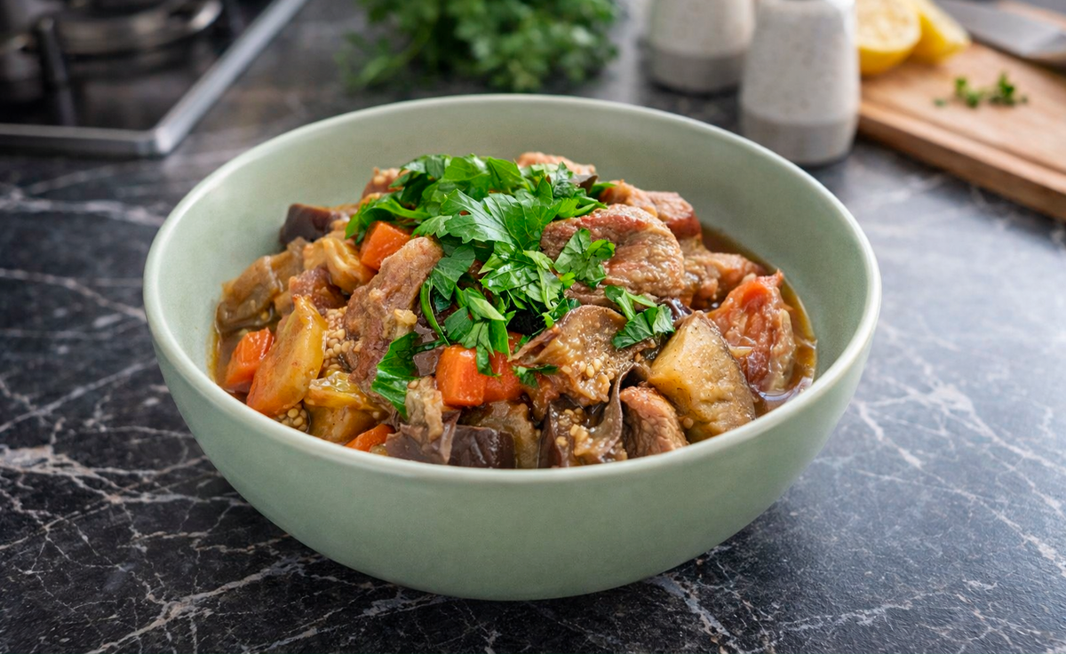 Томленое мясо с баклажанами