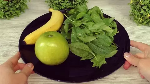 Подготовьте ингредиенты: тщательно промойте листья шпината и обсушите их. Яблоко желательно очистить от кожуры и нарезать на кубики. Банан также нужно очистить и нарезать на дольки. Если хотите добавить немного свежести, выжмите сок из лимона прямо в чашу блендера.