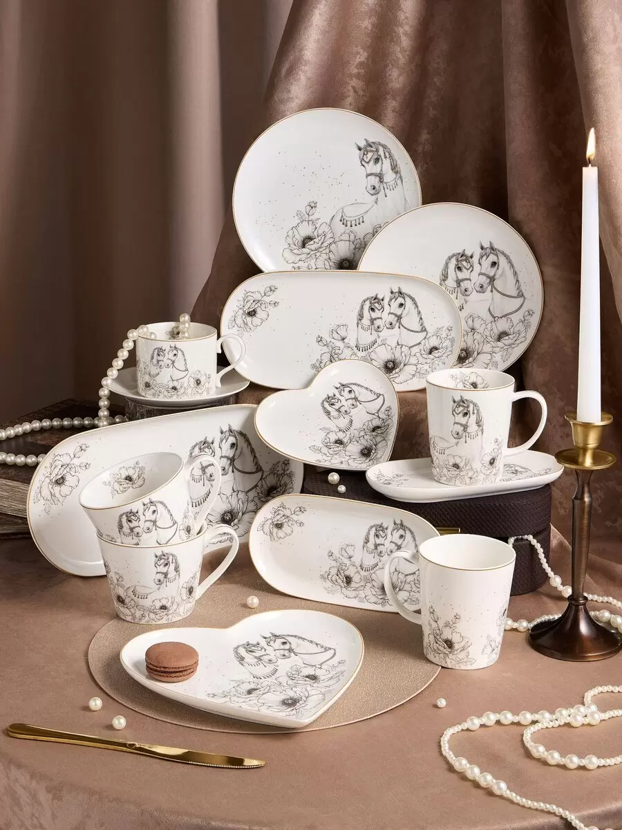 В коллекции TOP STYLE от Арти-М ярко выделяется символ года — лошадь. Этот элемент дизайна моментально привлекает внимание и добавляет нотку праздничного настроения. Нежные формы и высококачественный фарфор в сочетании с красивой подарочной упаковкой делают эти товары не только практичными, но и желанными для покупки.