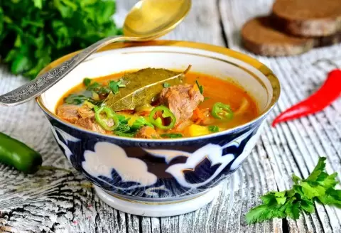 Рекомендуется использовать кастрюли с толстыми стенками, лучше всего подойдёт казан. Шурпа должна быть насыщенной зеленью и овощами, поэтому не забывайте о специях: лавровый лист, укроп, зира и кинза идеально подойдут.