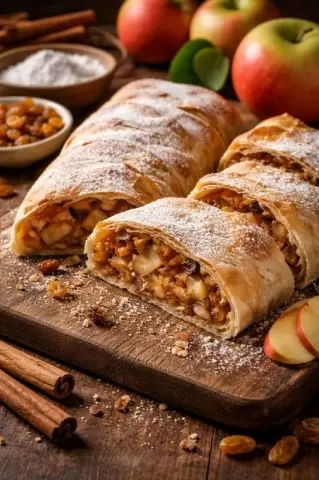 Этот рецепт исключает лишние шаги и включает все необходимые элементы для создания идеального баланса вкуса и текстуры. Хрустящая корка, сочная начинка и гармония сладости с кислинкой — всё это делает штрудель желанным десертом, которого хочется повторить.