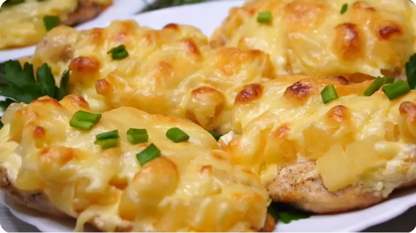 - Про ананасы: Если используете свежий ананас, нарежьте его мелко и немного обжарьте, чтобы он стал мягким.