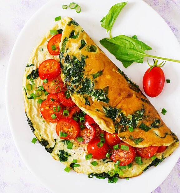 Энергия от яиц даёт длительное насыщение, а вода и волокна из шпината и помидоров создают ощущение объёма в тарелке. В итоге вы едите меньше, но чувствуете себя лучше — без тяжести и упадка сил.