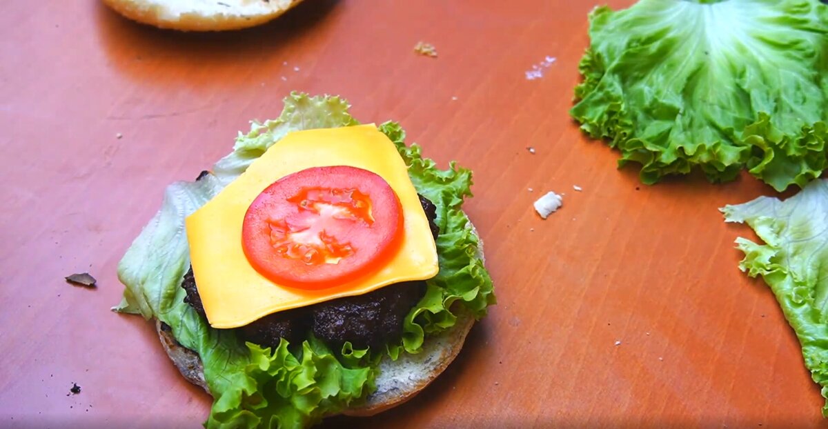 Подготовка овощей и сборка бургера