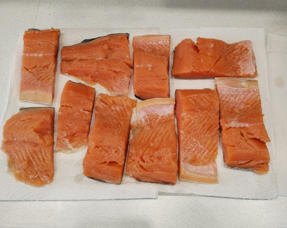 По истечении суток выньте форель из холодильника и аккуратно промокните филе бумажным полотенцем, чтобы избавиться от лишней влаги. Далее, чтобы улучшить текстуру, оставьте рыбу еще на 10-12 часов в холодильнике для просушивания. Такой подход придаст филе идеальную консистенцию.