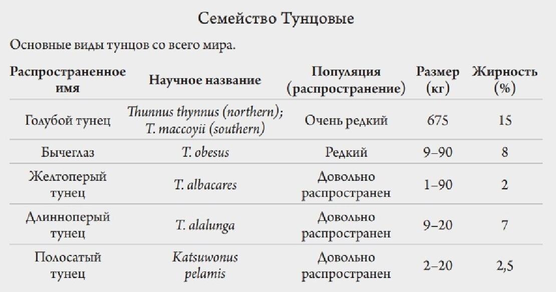 Среди родственных видов абсолютным антагонистом тунца является скумбрия. Эта рыба, достигающая 45 см в длину и весом от 0,5 до 1 кг, ведет активную жизнь в водах Северной Атлантики и Средиземноморья. Как и у тунца, мясо скумбрии полно красных волокон и обладает характерным резким запахом. Часто скумбрию вылавливают массово и продают целиком. Однако стоит помнить, что эта рыба подвержена быстрому порче, поэтому её необходимо немедленно замораживать после вылова.