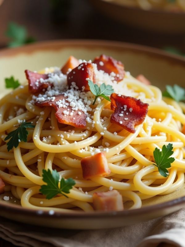 Выкладывайте карбонару на тарелки, посыпая оставшимся сыром, и подавайте горячей. Наслаждайтесь своим кулинарным шедевром!