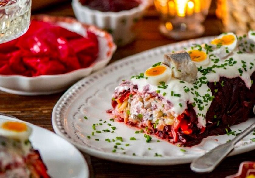- Финский салат-рулет из сельди и свеклы