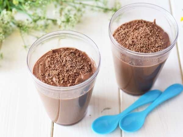 Полученная масса должна быть нежной и однородной, resembling средней жирности сметаны. Разделить её по порционным стаканам и установить в холодильник на 2-3 часа.
