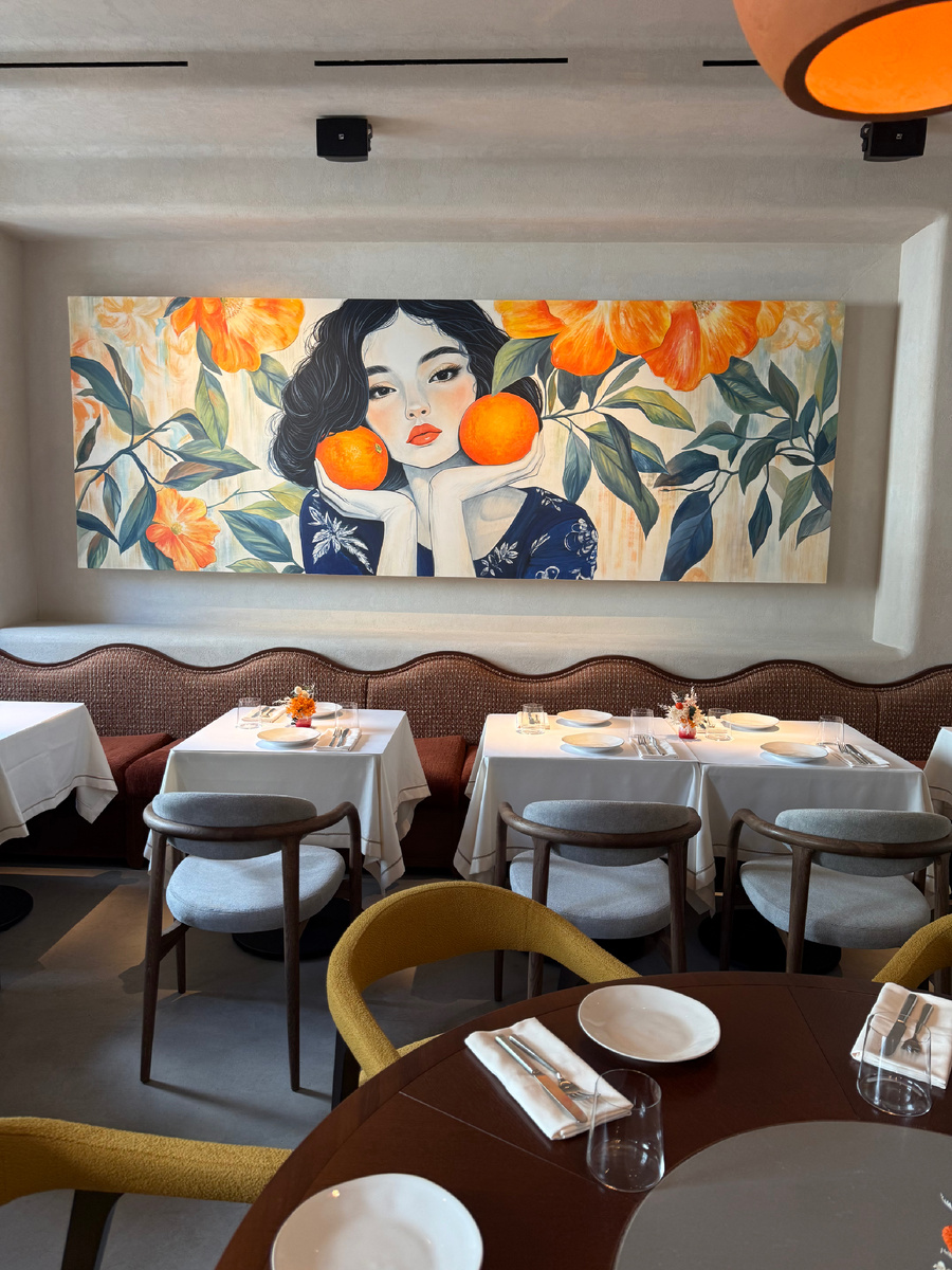 В интерьере особое внимание привлекает картина с чернобровой девушкой и апельсинами, создающая яркий акцент. Атмосфера заведения отражает современное видение грузинской культуры, которая в последние годы все больше привлекает не только гастрономов, но и путешественников.