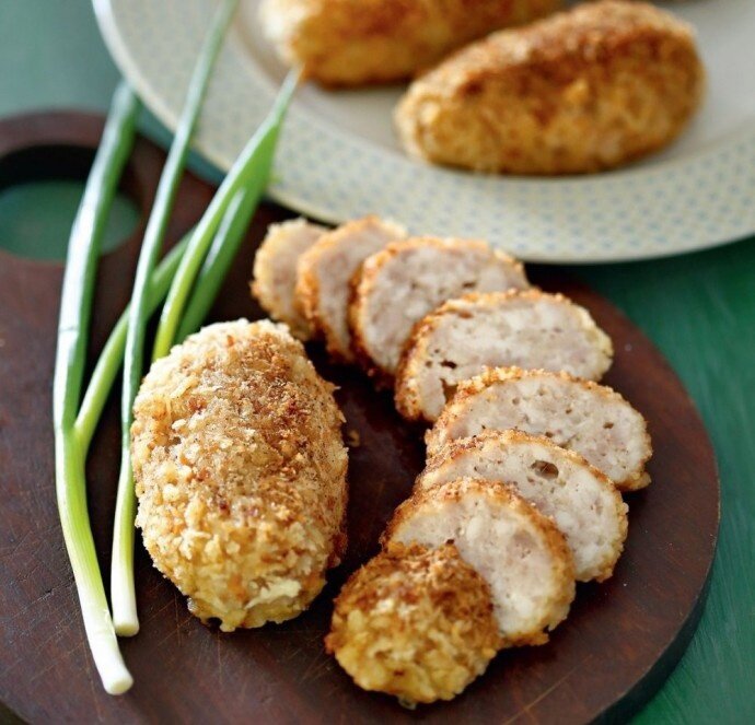 Обваляйте их в крошке, уложите на тарелку и поставьте в холодильник на 20 минут. Затем обжаривайте в топленом масле на среднем огне до появления золотистой корочки. Подавайте горячими.