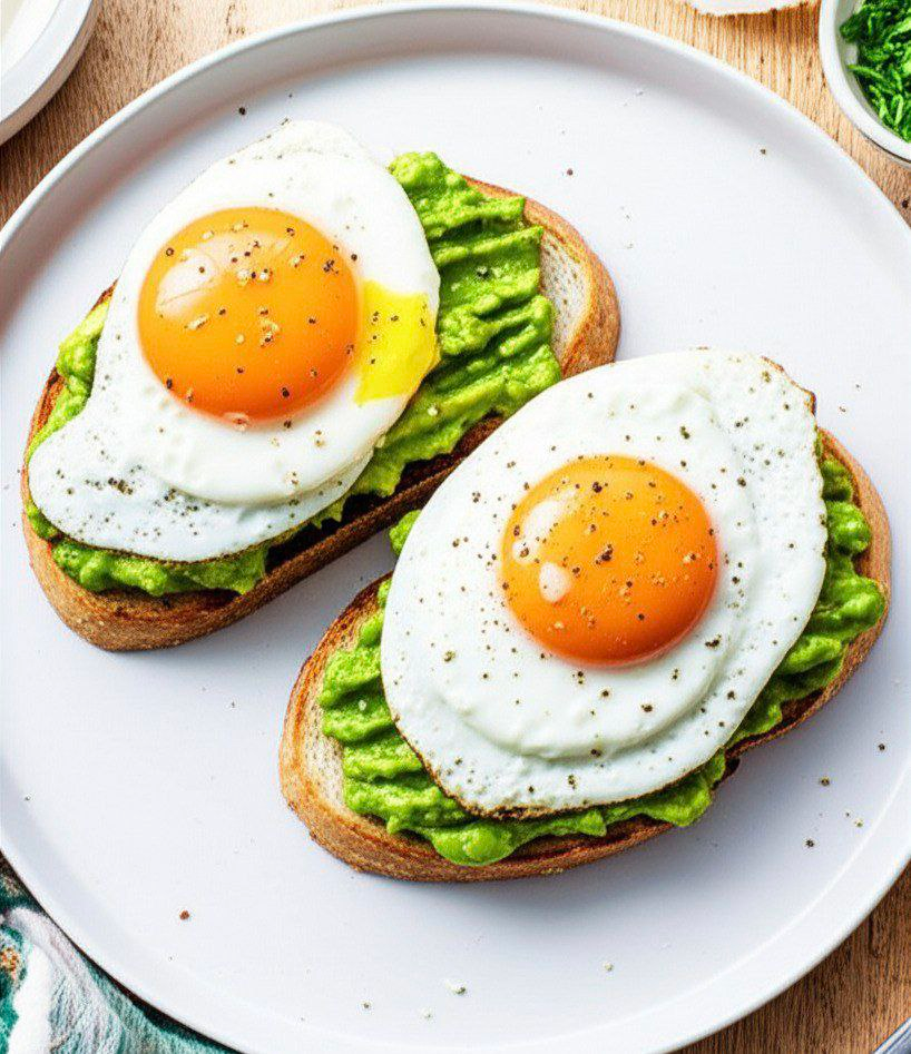 Описание: Хрустящий тост, щедро намазанный сливочным авокадо и коронованный нежным яйцом, представляет собой идеальное утреннее побрякушка.