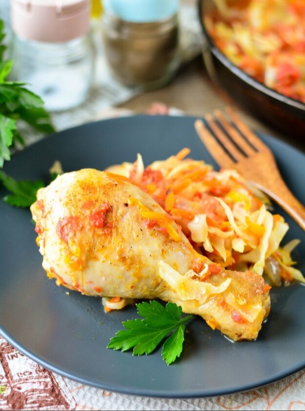 Подавайте горячим — угощение, состоящее из куриного мяса и тушеной капусты, станет настоящим успехом на вашем столе!