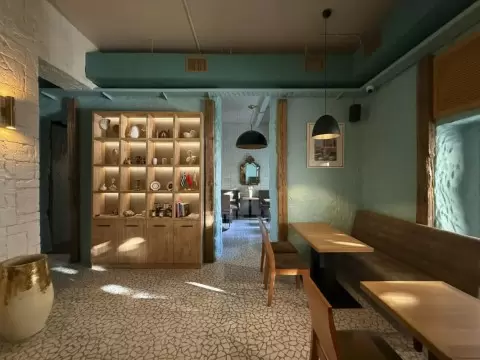 С интерьером и атмосферой ресторана все весьма симпатично: стены окрашены в оттенки синего, напоминающие Средиземное море, а мебель простая и удобная. В декоре присутствуют элементы, пробуждающие воспоминания о традиционном греческом доме и его уюте.