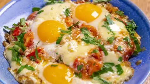 Яичница на завтрак — это classic, но есть способы сделать её поистине незабываемой! Попробуйте сочетание томленого лука, свежей зелени, сыра и сочных томатов, и вы поймете, что такое настоящая гастрономическая гармония!