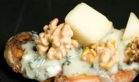 На противень с хлебом выкладывается голубой сыр и по паре орехов на каждый кусочек. Далее отправьте противень в духовку еще на 5-7 минут, чтобы сыр расплавился и приобрел ароматную корочку.