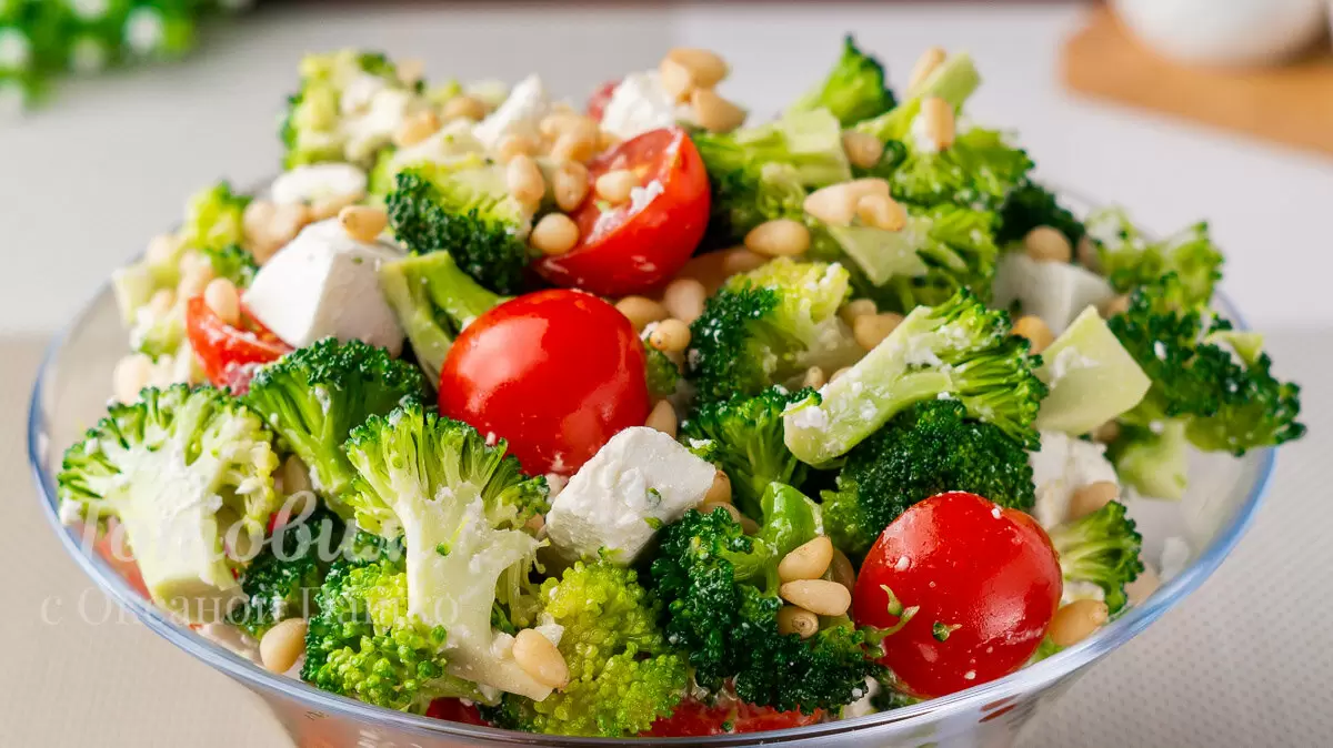 Салат «Милена» с брокколи — это выбор тех, кто ценит легкие и свежие блюда. В его составе сочетаются полезные овощи и мягкий сыр, а кедровые орехи придают ему оригинальность. Важно отметить, что брокколи в этом рецепте используется в сыром виде, предварительно замаринованная, что делает её особенно вкусной и привлекательной. Этот легкий безмайонезный салат станет настоящей звездой любого стола и понравится даже тем, кто придерживается здорового питания или соблюдает пост.