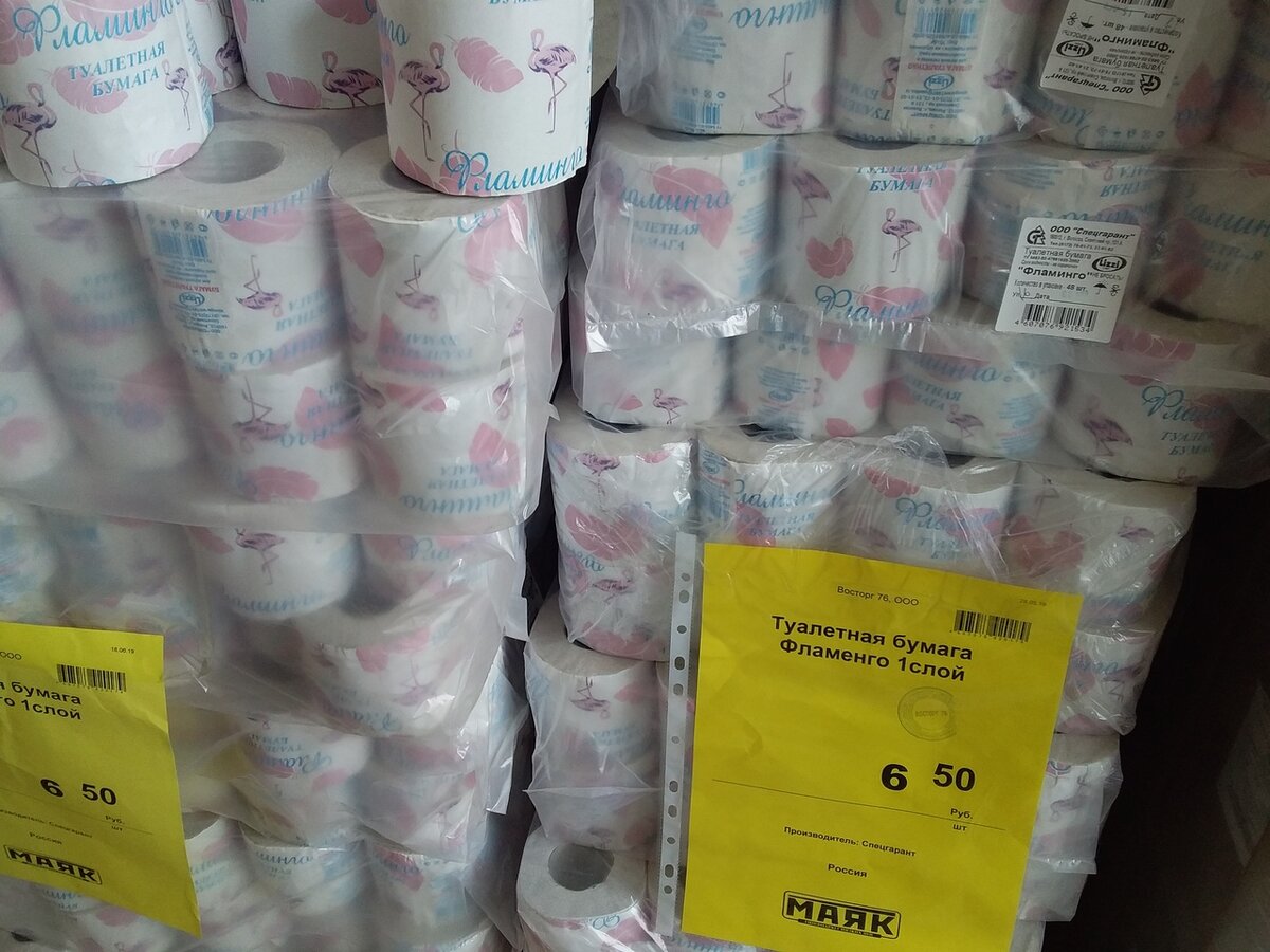 - Рулон туалетной бумаги "Фламинго" — 6,50 руб.;